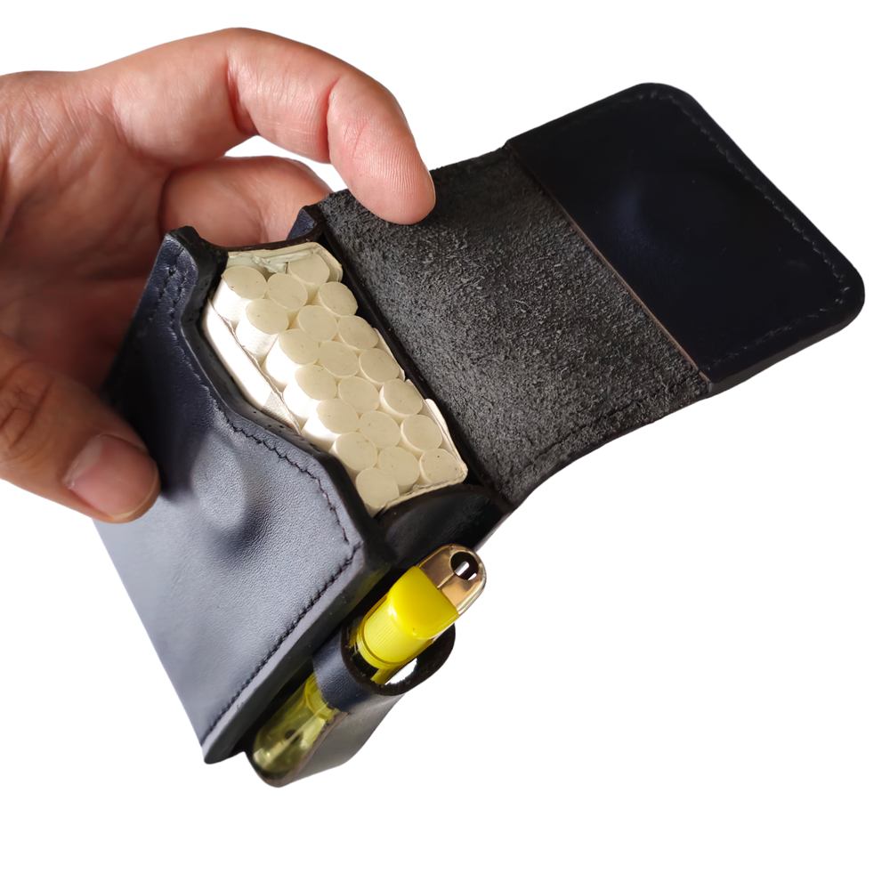 جاسیگاری چرم طبیعی مدل کلاسیک، از چرم مرغوب گاوی تهیه شده و با ظرافت تمام، توسط دستان هنرمند ایرانی دوخته شده است. اصالت و بوی چرم طبیعی، در کنار ظرافت دوخت، طراحی منحصر به فرد و رنگ بندی متنوع، این جاسیگاری را به محصولی بینظیر تبدیل کرده که نظر هر بینندهای را به خود جلب میکند.